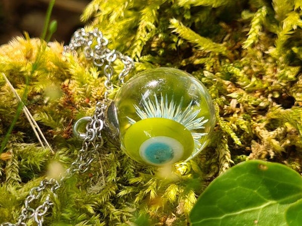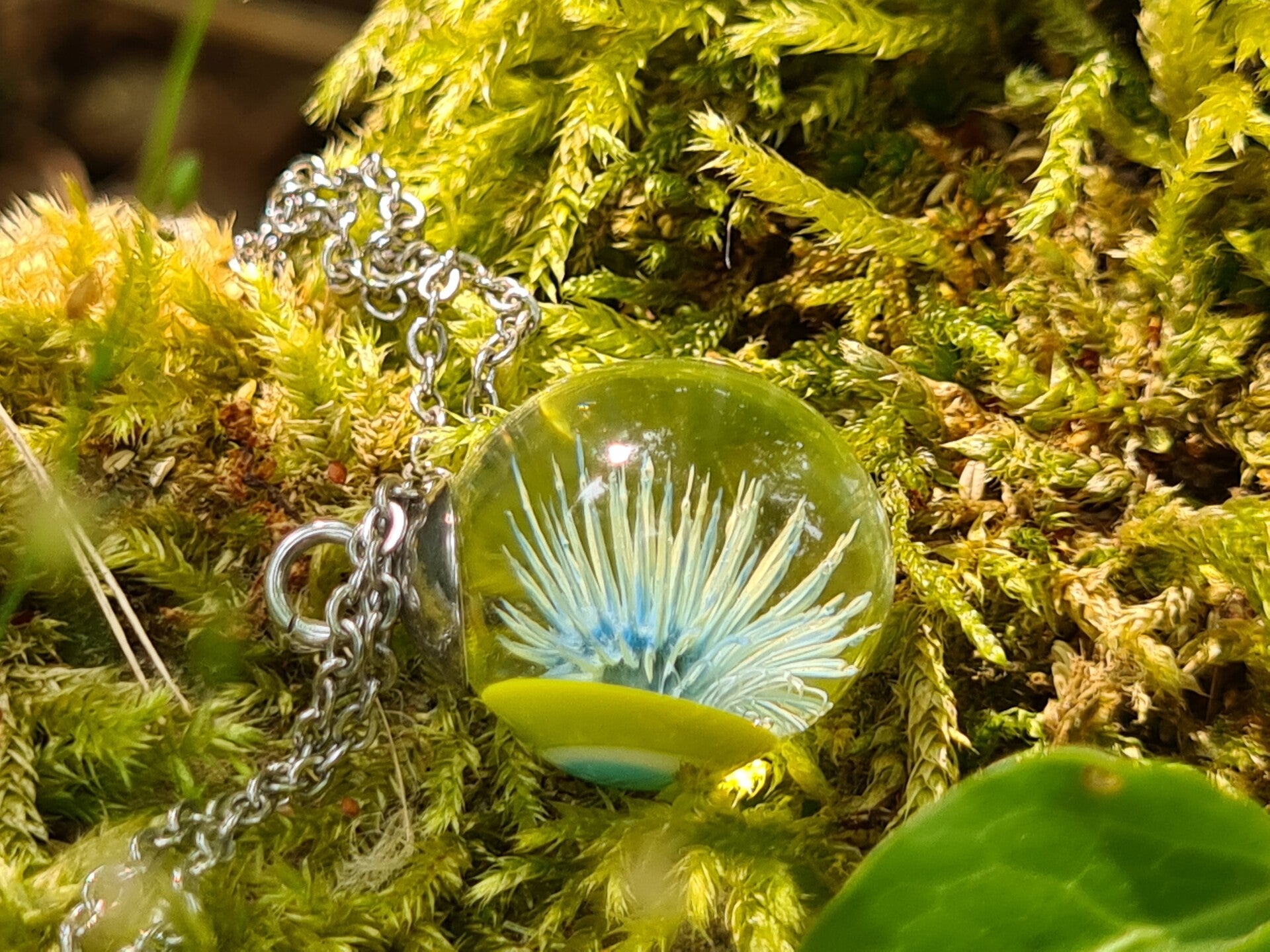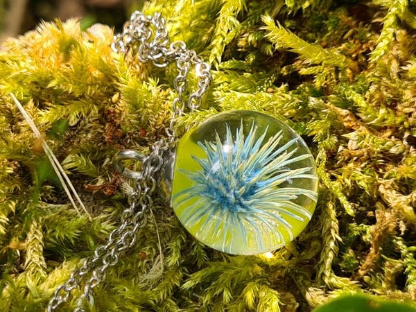 Blauw met gele distel met groene achtergrond.