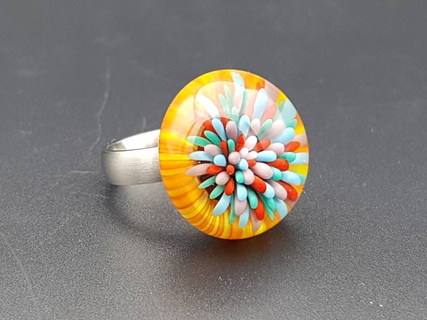Ringtop in blue, red, purple, blue/green, orange and yellow.