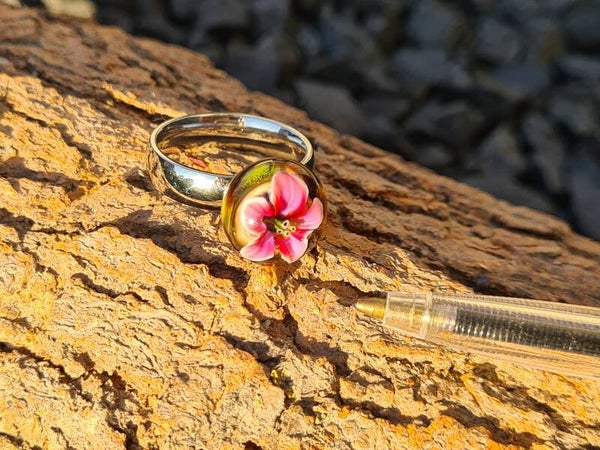 Voor mensen die van kleine subtiele, maar wel gedetaillerde ringtops houden. Deze minitop met één murrini ter breedte van 1.2 - 1.5 cm en een hoogte van 9 tot 11 mm.