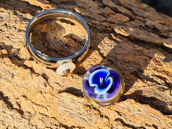 Voor mensen die van kleine subtiele, maar wel gedetaillerde ringtops houden. Deze minitop met één murrini ter breedte van 1.2 - 1.5 cm en een hoogte van 9 tot 11 mm.