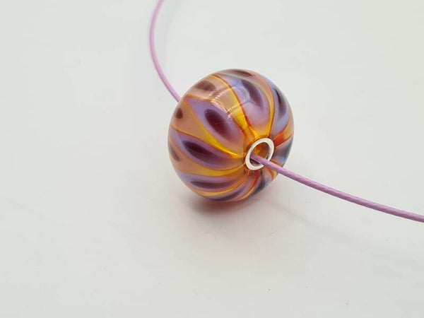 Leafbead in red, yellow, lilac, pink, purple and dark blue.
