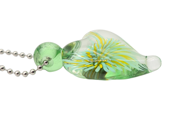"Heart" bead in aqua blue, yellow and green. (Implosion technic)