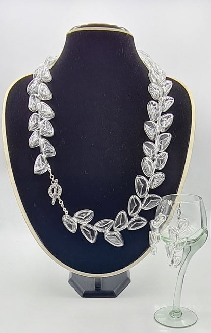 A luxurious set consisting of a necklace and earrings made of hand-blown beads, finished with 925 Sterling Silver.