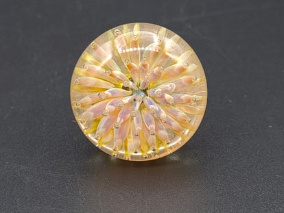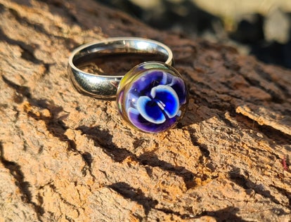 Voor mensen die van kleine subtiele, maar wel gedetaillerde ringtops houden. Deze minitop met één murrini ter breedte van 1.2 - 1.5 cm en een hoogte van 9 tot 11 mm.